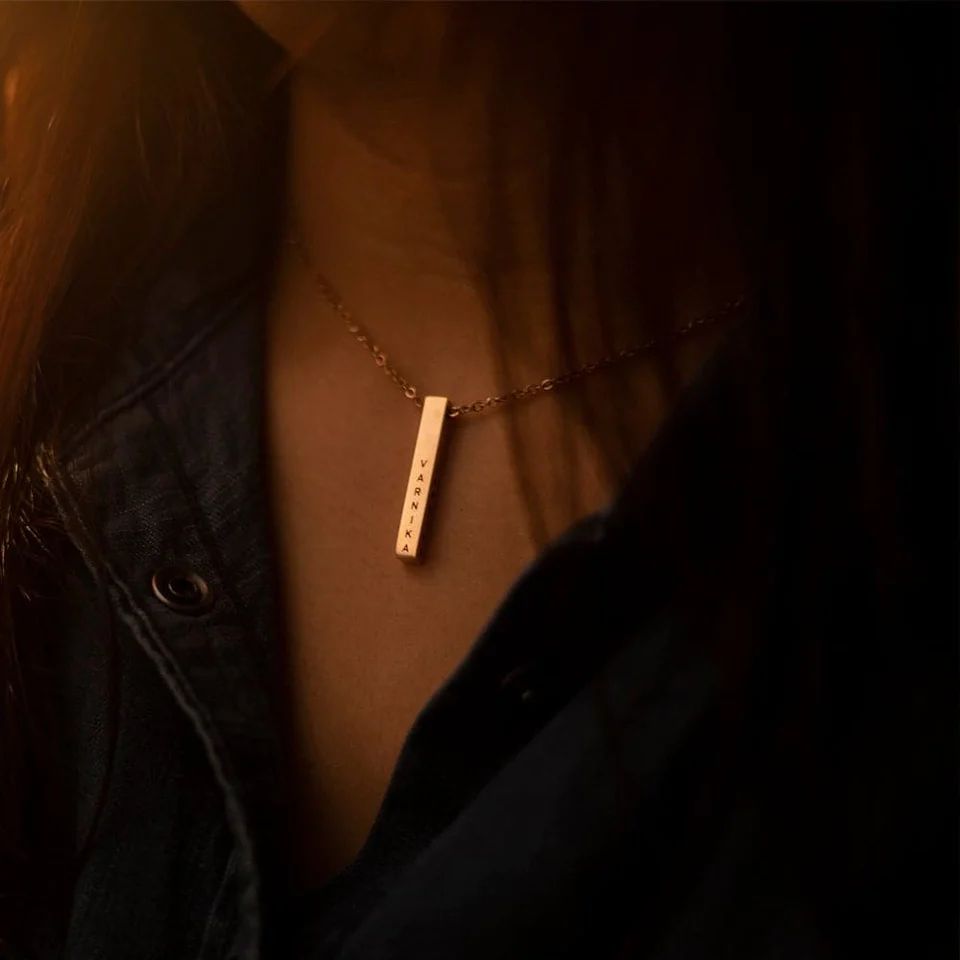 Ideal for birthdays, anniversaries, or Rakshabandhan, this bar pendant is as personal as it gets.