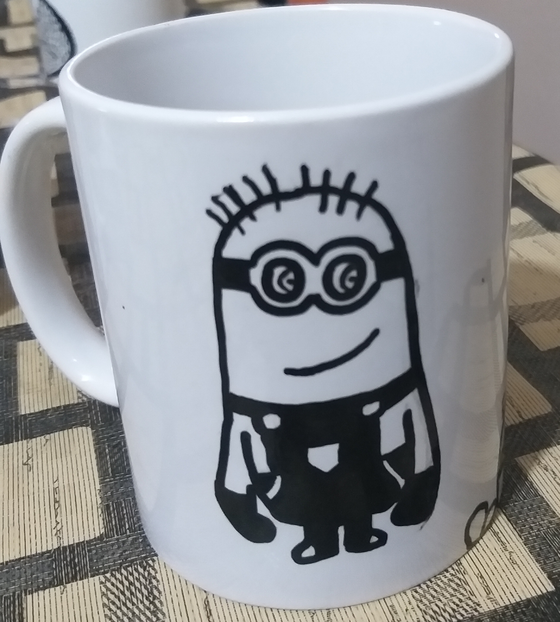 Mugs are hand painted. This can be customised with any design,name initials, logo or any idea which you wish.
